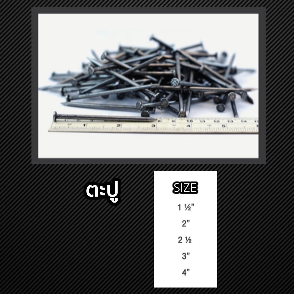 ตะปูตอกไม้คุณภาพสูง หัวกลม ตัวไม่งอ ปลายแหลม แข็งแรงทนทาน ไม่หักง่าย ขนาดได้มาตรฐานอุตสาหกรรม