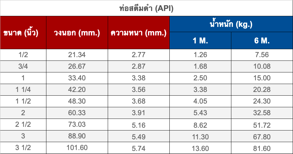 ท่อสตีมดำ (API) เป็นเหล็กชุบสังกะสีแบบจุ่มร้อน ไม่มีตะเข็บ ไร้รอยต่อ มีความแข็งแรง สามารถทนแรงดันสูงได้อย่างมีประสิทธิภาพ มีให้เลือกหลายขนาด ความยาวมาตรฐาน 6 เมตร นิยมนำไปใช้ในงานอุตสาหกรรม เช่น ใช้เป็นส่วนรองรับน้ำหนักหรือใช้เป็นท่อความดันสูง งานท่อไอน้ำ ระบบน้ำต่างๆ