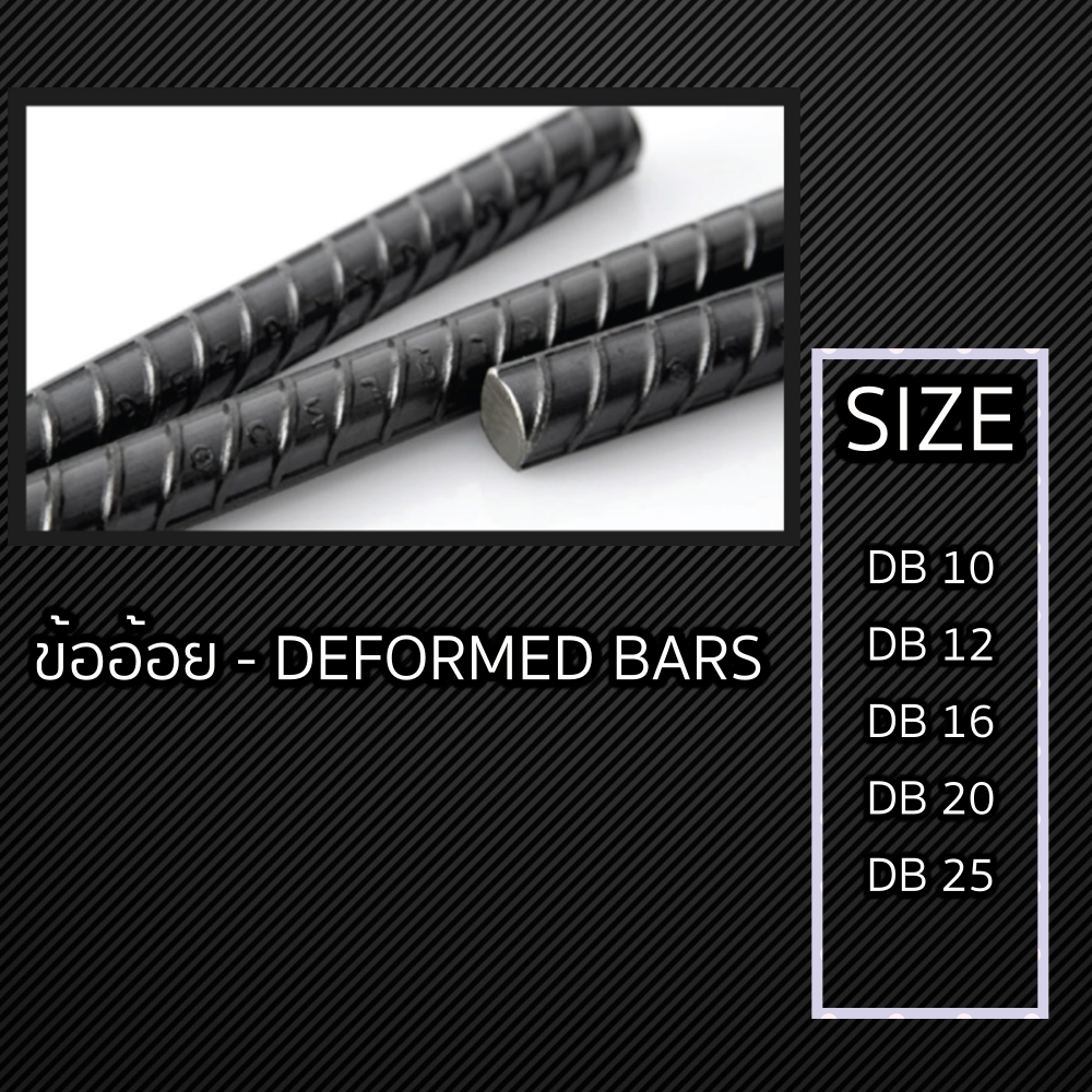 มีลักษณะเป็นเส้นกลมที่มีบั้ง เหมาะสำหรับใช้งานก่อสร้างเสริมคอนกรีตที่ต้องการโครงสร้างแข็งแรงเช่น อาคารสูง คอนโดมิเนียม ถนนคอนกรีต สะพาน เขื่อน สนามบิน