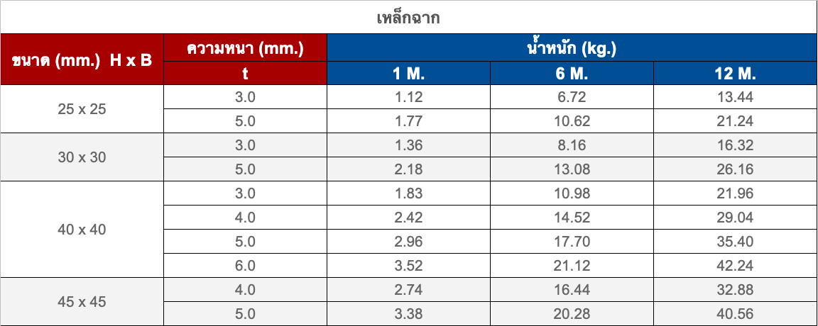 มีหลากหลายขนาดให้เลือกใช้ แล้วแต่จะนำไปใช้ในงานลักษณะใดอย่างเช่นนำไปทำฐานรอง ประตูเลื่อนหน้าบ้านซึ่งอาจใช้คู่กับเหล็กเพลาขาวหรือ นำไปเชื่อมทำชั้นวางของ และอื่นๆ อีกมากมาย