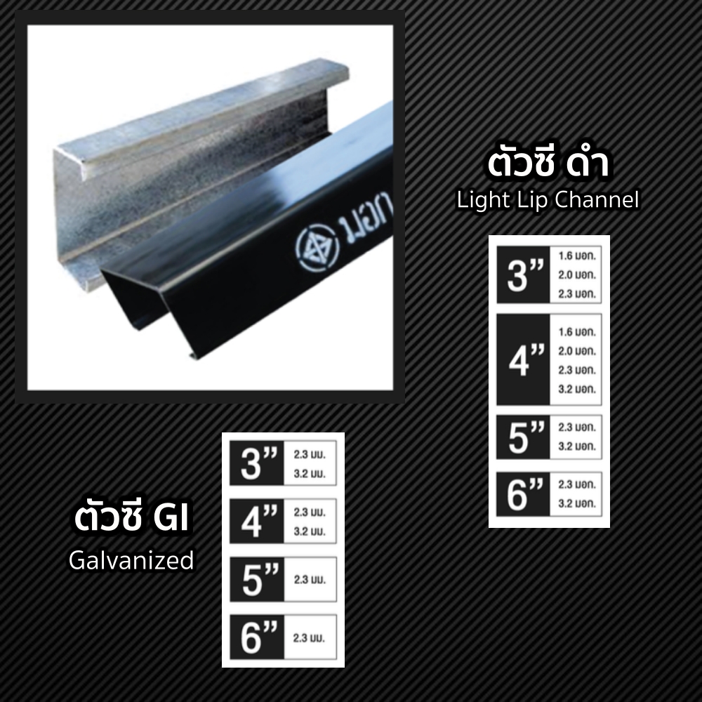 ตัวซี มอก. มีหน้าตัดเป็นรูปตัวซี เป็นเหล็กรูปพรรณ ขึ้นรูปเย็น สำหรับงานโครงสร้างทั่วไป การทำโครงหลังคา แปต่างๆ