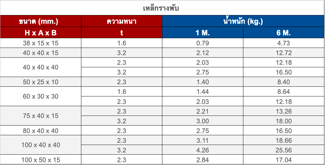 มีลักษณะหน้าตัดคล้ายตัวยู ปีกทั้งสองด้านจะมีขนาดที่เท่ากันเสมอ เหมาะสำหรับงานบันได แปต่างๆ งานโครงสร้างบ้าน หลังคาโรงงาน โครงถักจั่ว โครงหลังคา